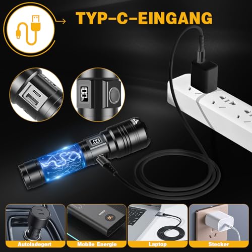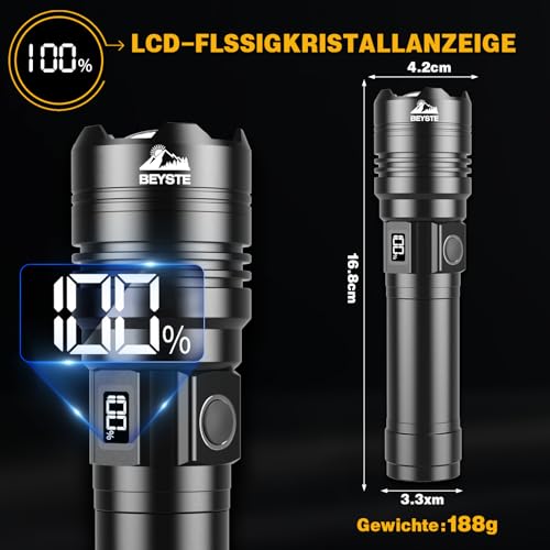 BEYSTE Lampe Torche LED Ultra Puissante, 1000000 Lumens Lampe De Poche, Lampe Torches Rechargeable USB, Lampe De Poche LED Ultra Puissante, Lampe Torche Tactique Longue PortéeIPX6 Étanche Pour Camping