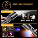 / BEYSTE Lampe Torche LED Ultra Puissante Avec Feu Latéral COB