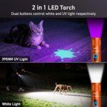 Laitver-Lampe-Torche-LEDTorche-UV-2-en-1-Lampe-de-Poche-Rechargeable-Ultra-Puissante-avec-395nm-Ultraviolette-Noire-6-Modes-Zoomable-tanche-Longue-Dure-pour-clairage-Dtecteur-durine-Animaux-0