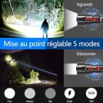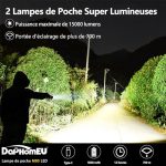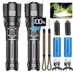 Lampe Torche LED Ultra Puissante Rechargeable, 150000 Lumens Lampe Torche Puissante, Lampe De Poche Led Super Lumineuse éTanche Avec 5 Modes, AdaptéE Aux Urgences, Au Camping (Avec batterie) (2)
