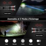 / Lepro Lampe Torche, LE2000 LE2050 Lampe de Poche IPX4 Étanche, Zoomable, 5 Modes Lampe Tactique avec Piles AAA ou Rechargeable 18650 pour Camping, Randonnée, Urgences